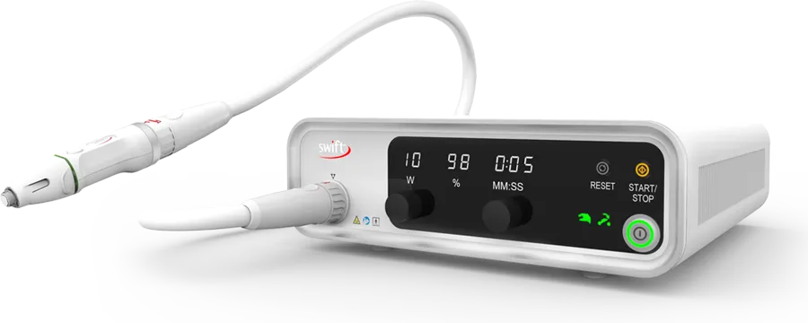 The handheld device used in Swift Plantar Warts Therapy delivers controlled and precise microwave energy to target the plantar warts tissue, ensuring accurate treatment and minimising damage to surrounding healthy tissue.